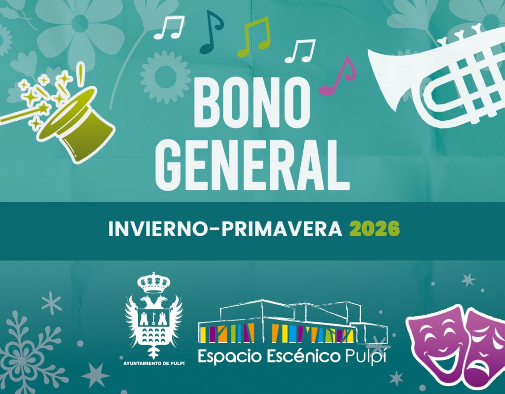 31 de diciembre de 2025 11:00 – 30 de mayo de 2026 23:45 Solo 80€ Con la venta anticipada de este bono de temporada tendrás derecho a reservar un asiento personal en el Espacio Escénico de Pulpí para presenciar las actuaciones teatrales y musicales que se describen a continuación: «ÉRASE UNA VEZ, ALMERÍA» «GEOMETRÍA» «YO, […]